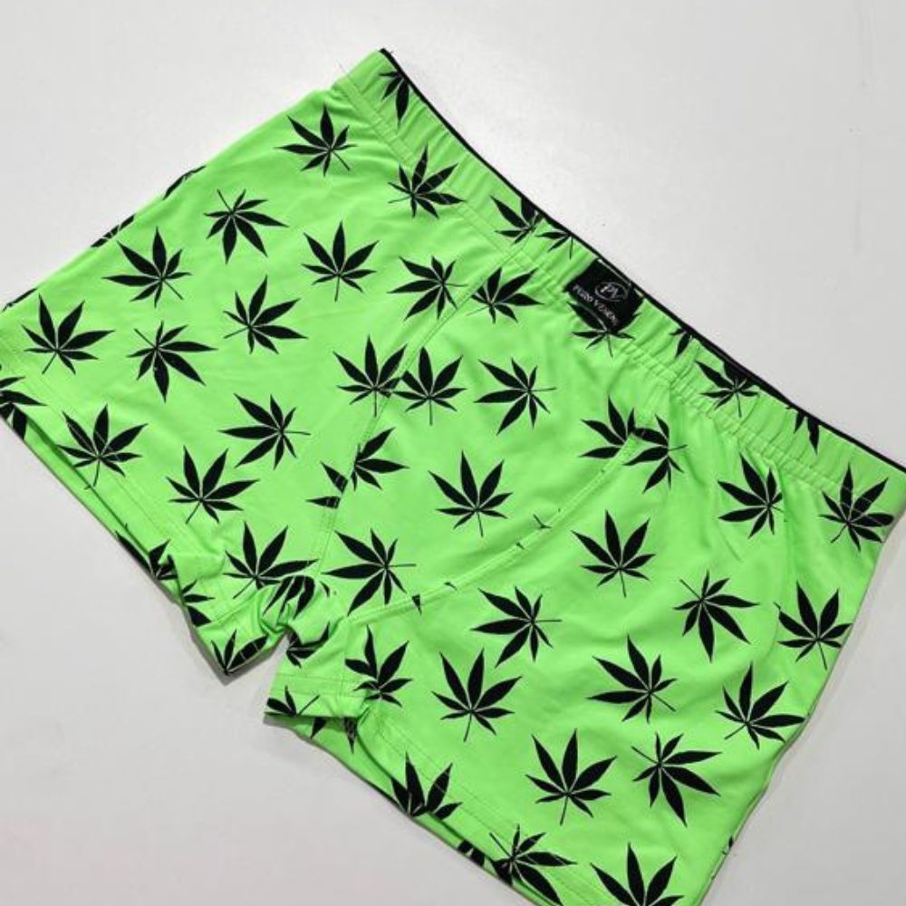 Cueca Boxer Masculino Box Microfibra de Poliamida Estampada - Verde Neon Folha Preta