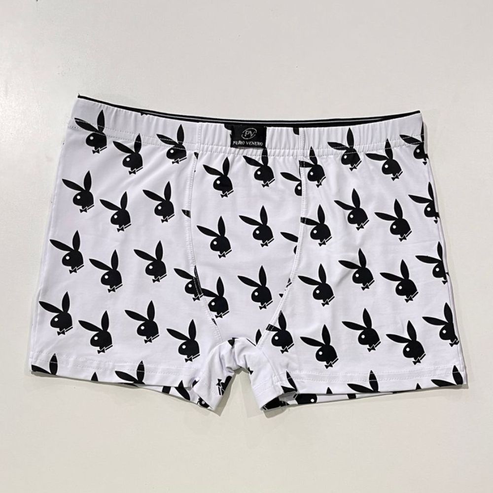 Cueca Boxer Microfibra de Poliamida Estampada Puro Veneno - Branca Playboy Preto
