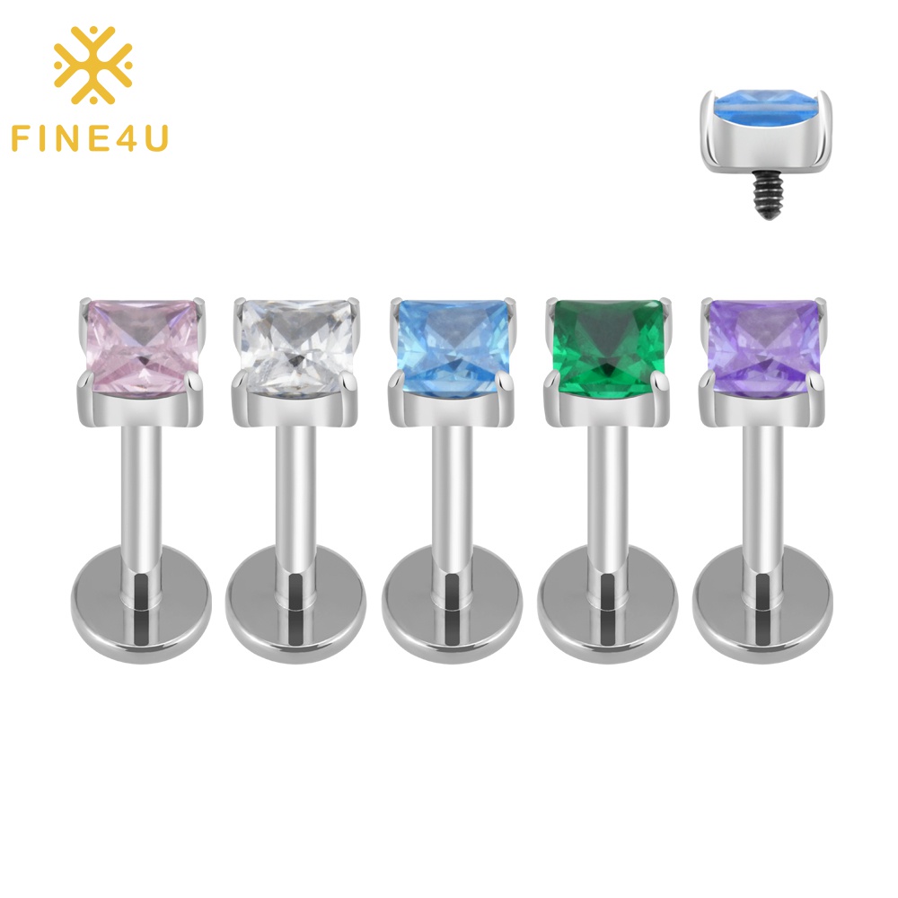 FINE4U Piercing Titânio Ponto De Luz 3-4mm Zircônia Haste 6-12mm Rosca Interna Labret Tragus Helix