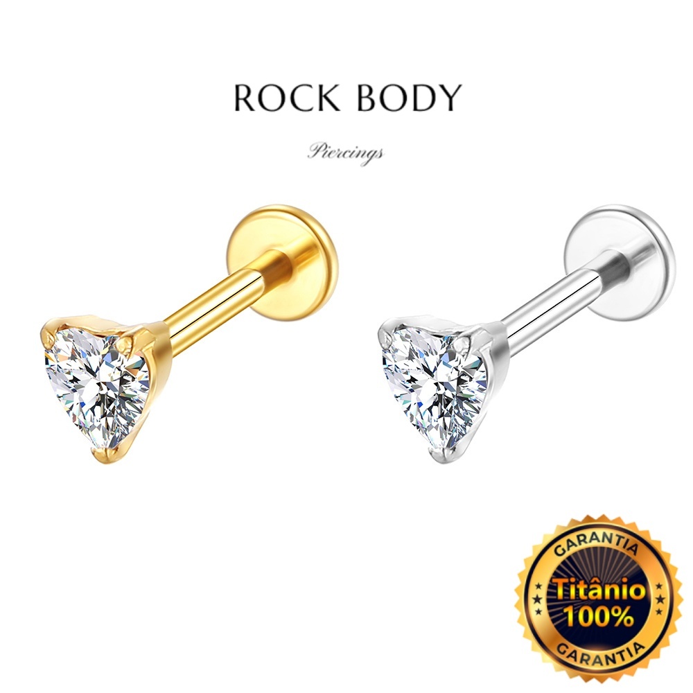 Labret Conch Piercing de Titânio PVD com Triângulo de Zircônia para Helix, Tragus, Nariz, Boca-Medusa - Lomiss Semijoias
