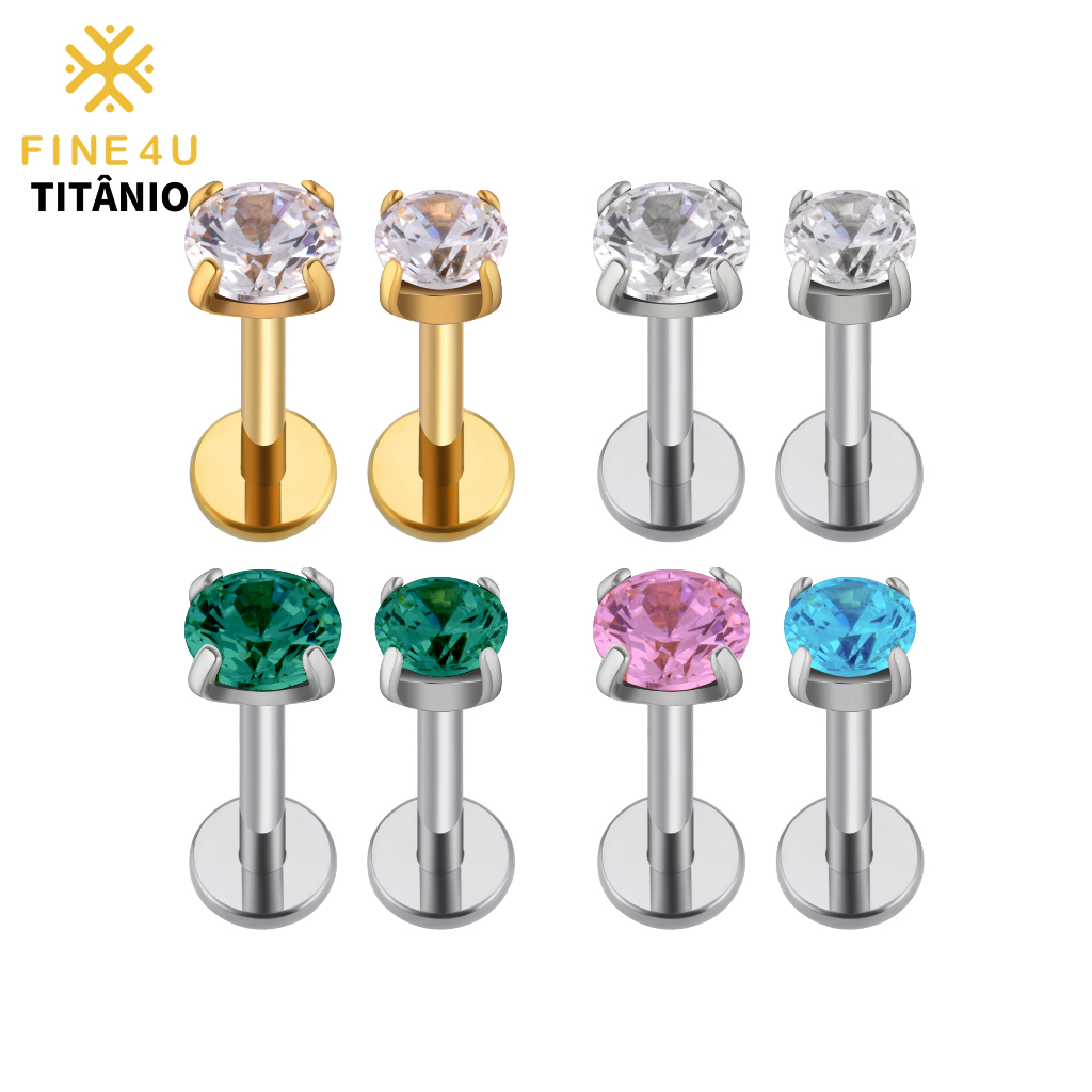 FINE4U Piercing Titanio Ponto De Luz 2.5/3/4mm PVD Para Labret Tragus Helix Conch Cartilagem