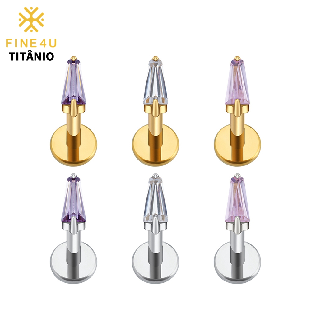FINE4U Piercing Ponto De Luz Titânio 2023 Novo Modelo para Tragus Helix cartilagem com Zircônia