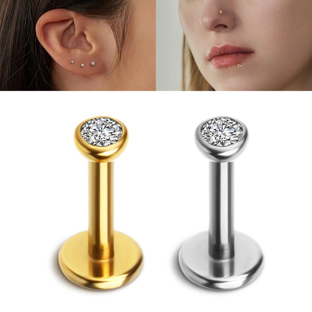 Piercing Labret Ponto De Luz Titânio Zircônia | Helix, Tragus, Conch, Nariz, Boca-Medusa e Outros