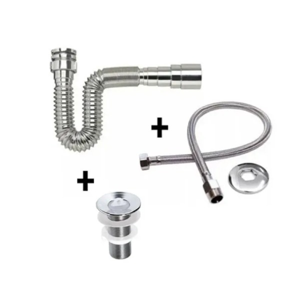 Sifão Sanfonado + Engate Flexível 40cm + Válvula Lavatório ABS Cromado