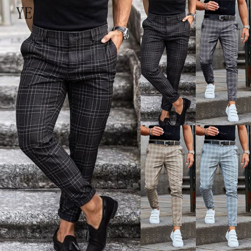 24 Horas De Entrega Calças Stretch Corredores Malha Xadrez Lápis Longos Homens Plus Size Magro 528