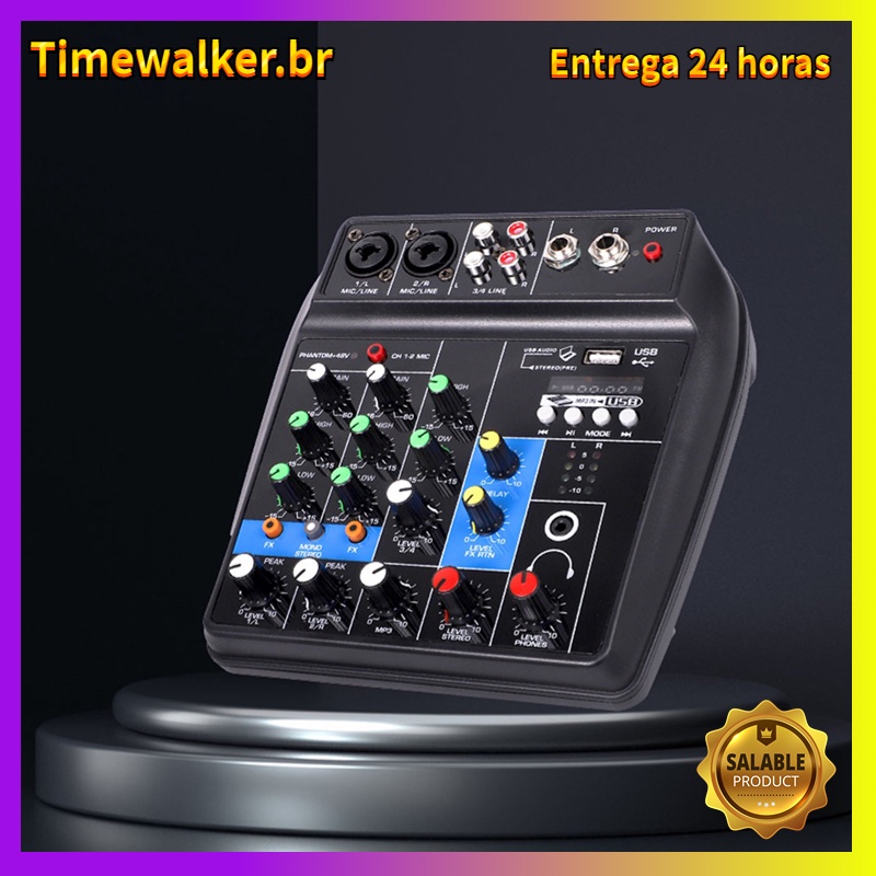 (Entrega 24 Horas)Console De Mistura De Som 4 Canais Interface Do Sistema De Mesa Bluetooth-Compatível Equipamento De Gravação De Música