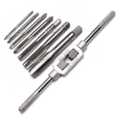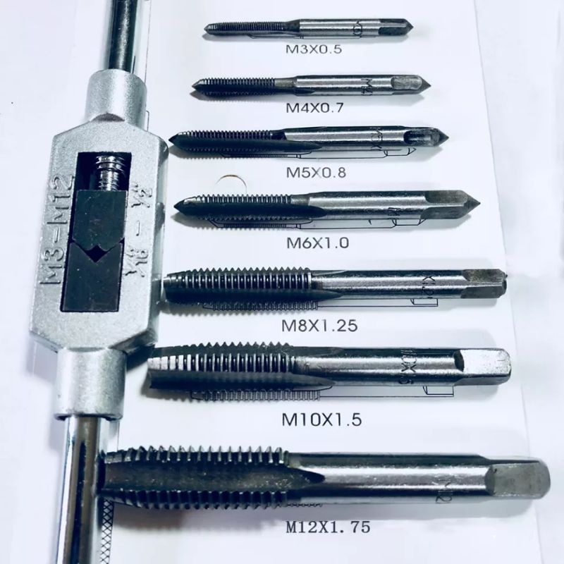 Jogo De Macho Com 8 Peças Para Abrir Roscas M3 A M12 Com Manopla Universal Macho Polegada E Milimetro