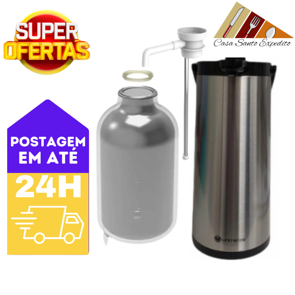 KIT 3 PEÇAS Casco Ampola e Bomba de Sucção para Garrafa Térmica 2,5L Inox Unitermi SEM CABEÇOTE