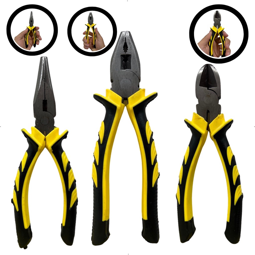 Jogo de Alicate Universal Corte Bico Fino 3 Alicates Kit Alicate Multiuso Universal Bico e Corte Profissional