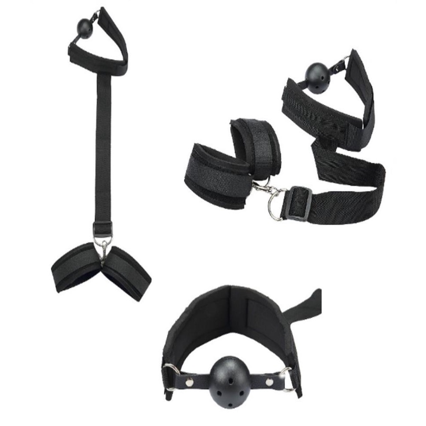 Kit De Prender As Mãos Para Trás Com Mordaça Algema Bdsm Restrição Tapa Boca Sexshop