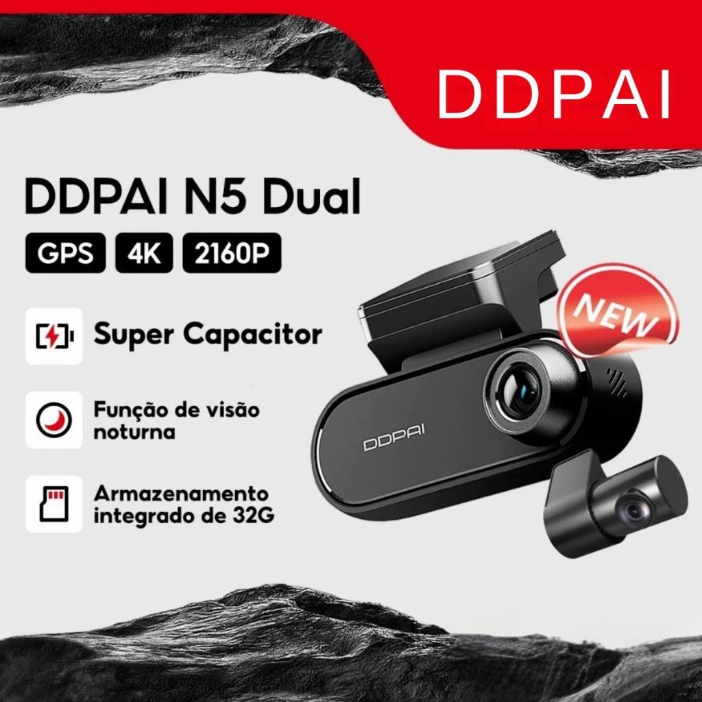 Câmera Automotiva N5 Dual DashCam 4K Ultra HD GPS Mapeamento D² Armazenamento Canal Duplo Super Capacitor DDPAI