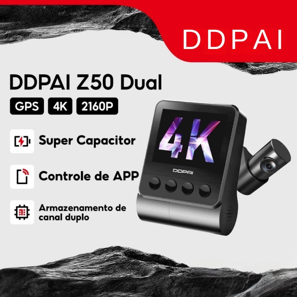 Câmera Automotiva Z50 DashCam 4K Ultra HD GPS Mapeamento D² Dual-Channel Armazenamento Super Capacitor DDPAI