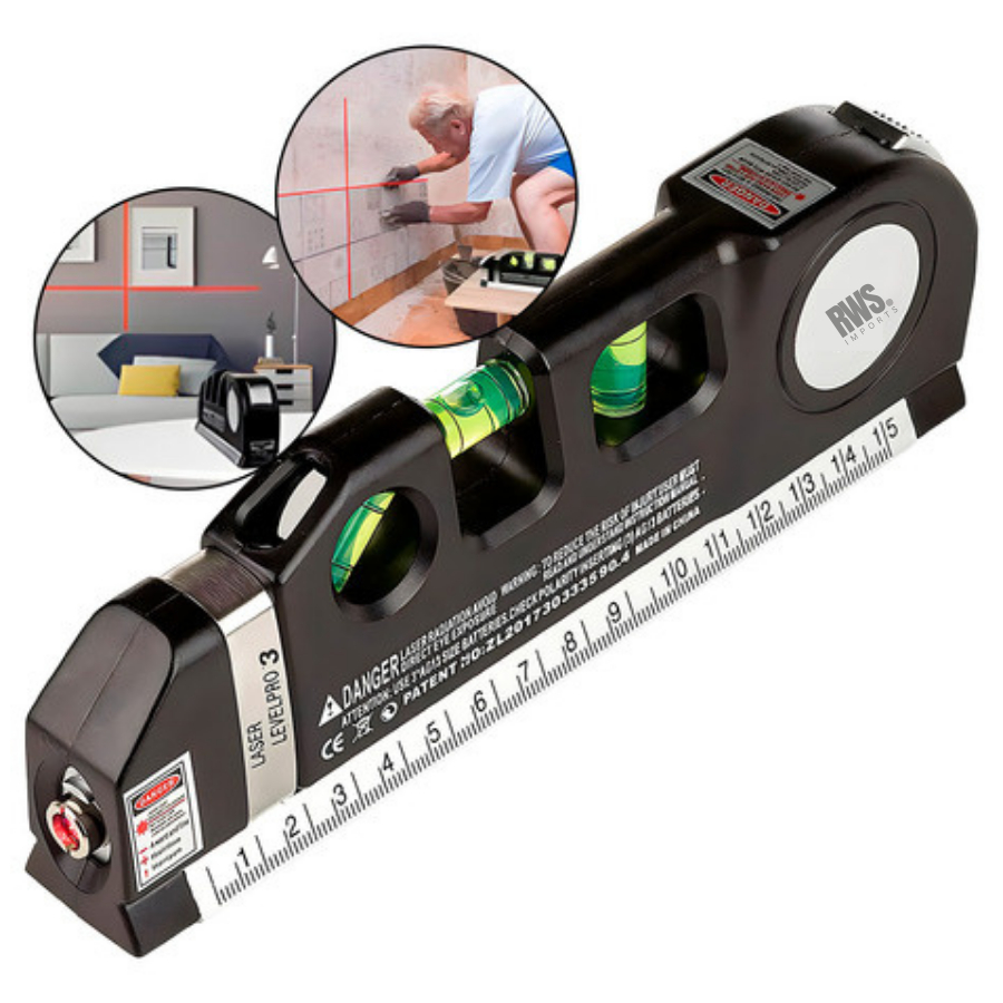 Medidor De Nivel A Laser Com Trena Régua E Bolha 3 Linhas