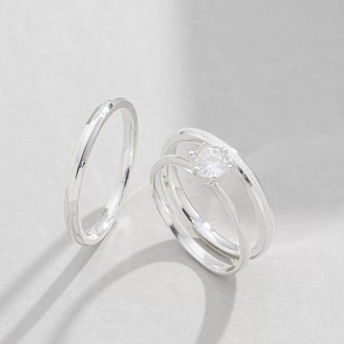 Par de alianças de Namoro prata 950 Anatomicas 2mm + Anel Solitário 925