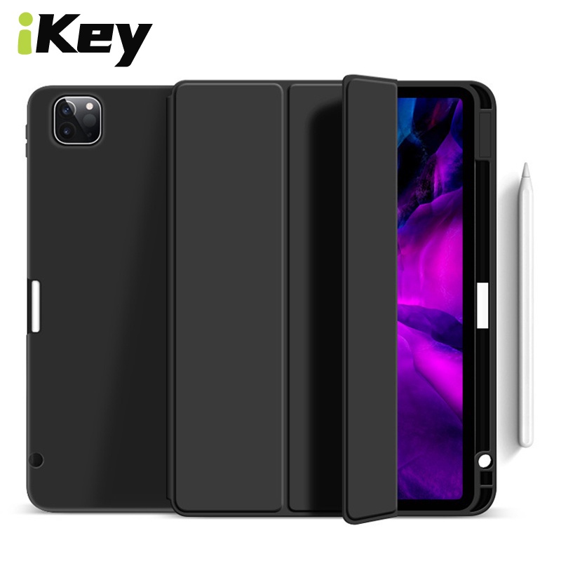 iKey All inclusive Magnetic Silicone Soft Protective Case For iPad Pro 11 12.9 2021 Air 4 4th gen Air 5 5th gen 10.9 inch 2018 2020 Tablet Ultra-Thin Anti-Drop Tri-Fold Smart Wake Sleep With Pen Slot Holder Flip Cover