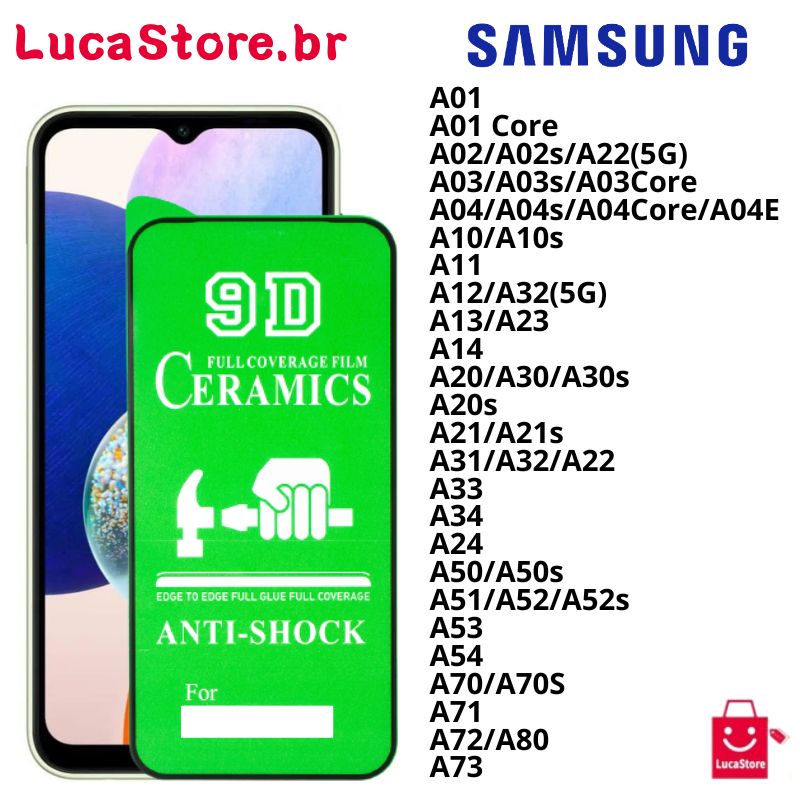 Pelicula Cerâmica 9D Para Samsung Galaxy A04/A04S/A04 CORE/A14/A24/A34/A54/M14/M54 Protetor de Tela Cobre Ela Toda