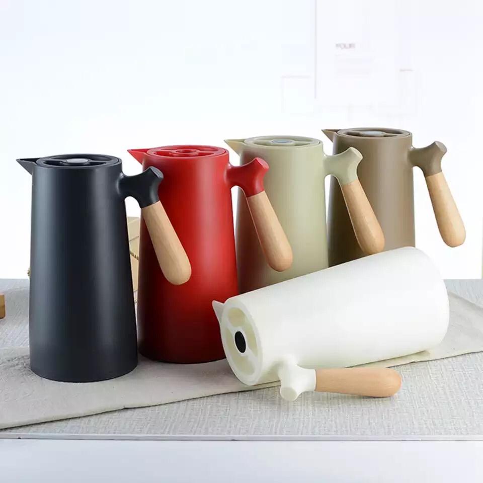 Garrafa Térmica Café Chá Nórdica Cabo em Madeira Jarra 1 Litro