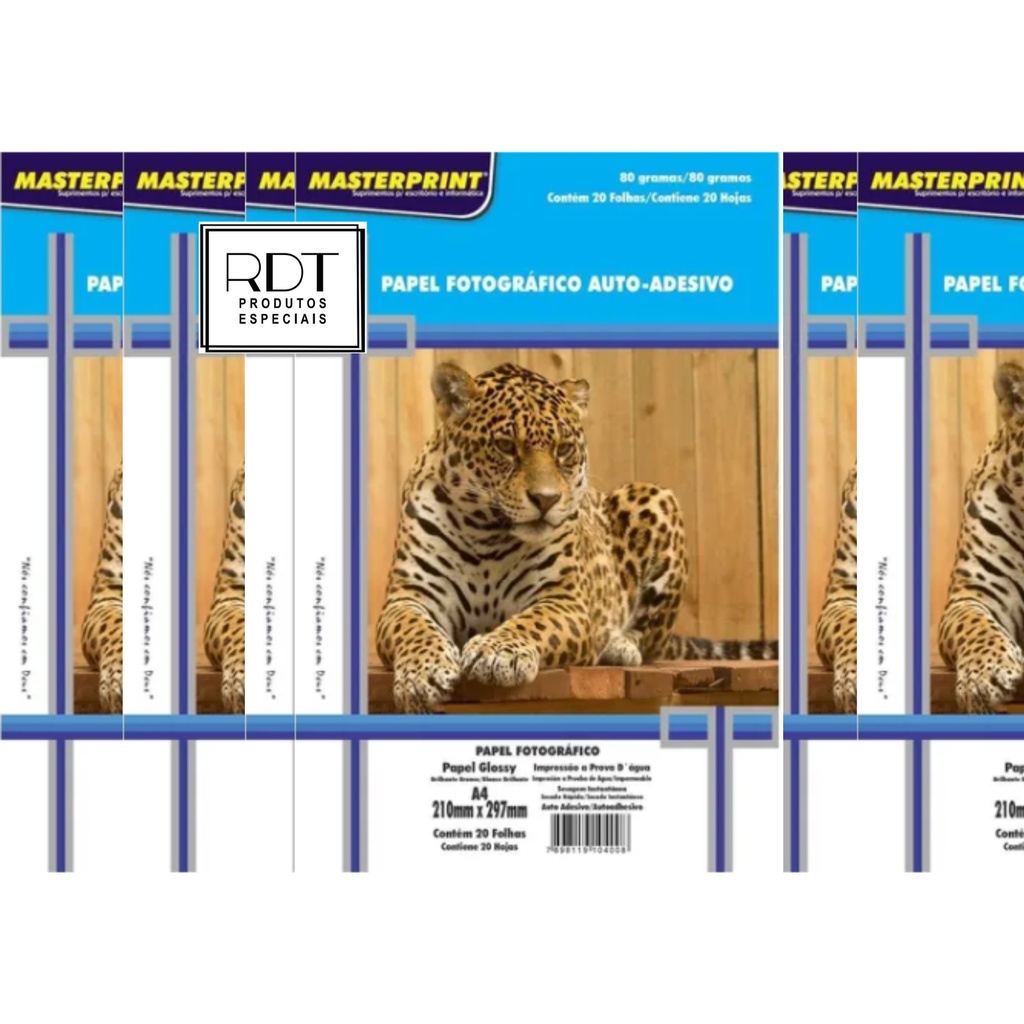 Papel ADESIVO GLOSSY 80g kit com 40 folhas A4 MASTERPRINT