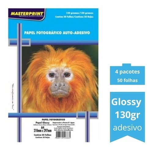 Kit 200 Folhas Papel Fotográfico Adesivo 130g Glossy Masterprint