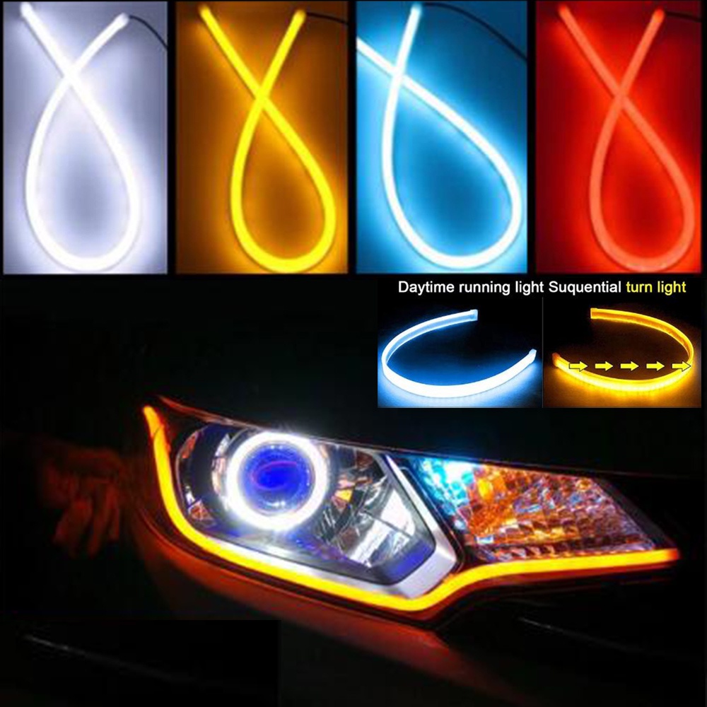 Fita de LED DRL Unidade Dual Color Universal 12V 60cm Farol E Seta 3000k 6000k Flexível Função Sequencial