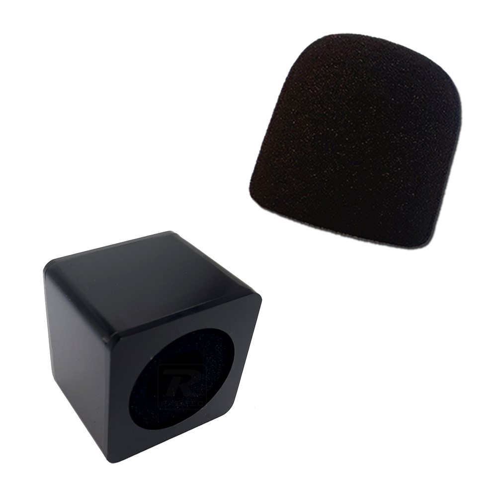 Kit Canopla Quadrada Preta + Espuma Baixa Preta Para Microfone Dinâmico