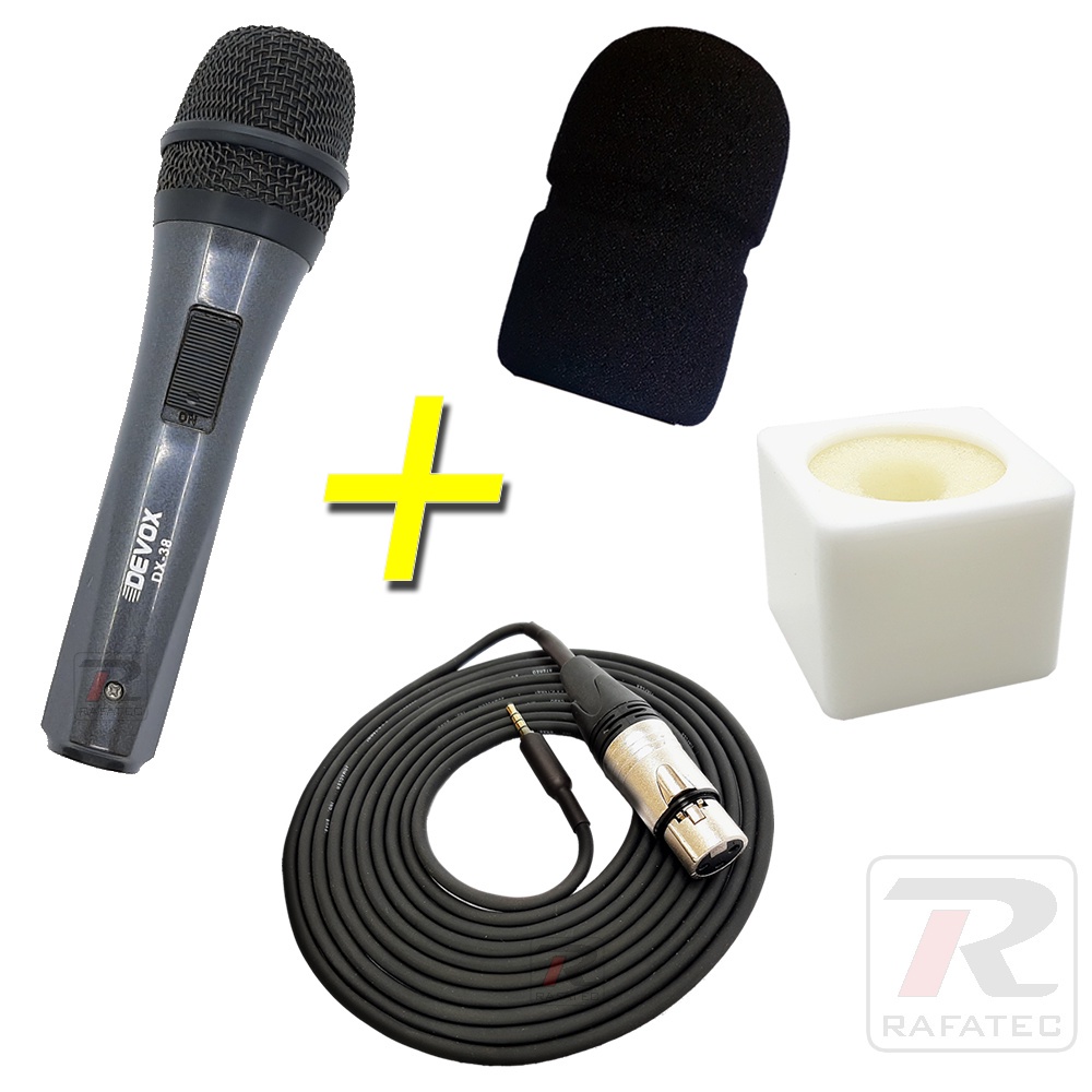 Kit Repórter Microfone No Celular + Cabo + Espuma Alta + Canopla Em Acrílico