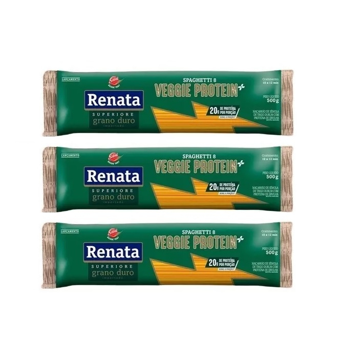 Macarrão Renata Veggie Protein+ 500g Espaguete 8 - Kit com 3 unidades