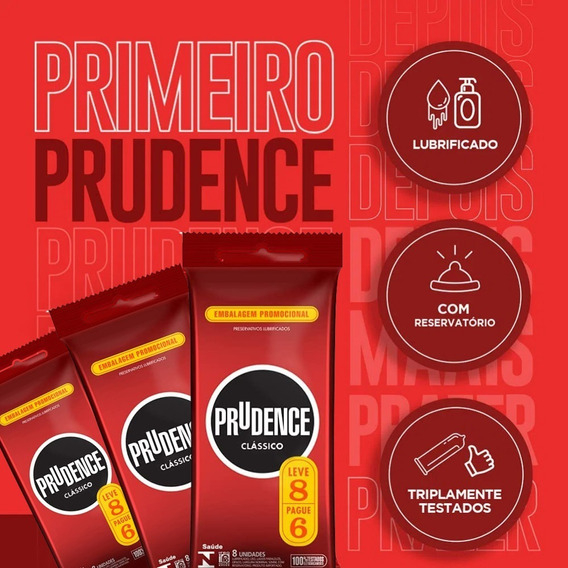 Kit com 3 Preservativo Prudence Clássico com 8 unidades Totalizando 24 unidades - Kit 3 X 8 - Camisinha - Lubrificado