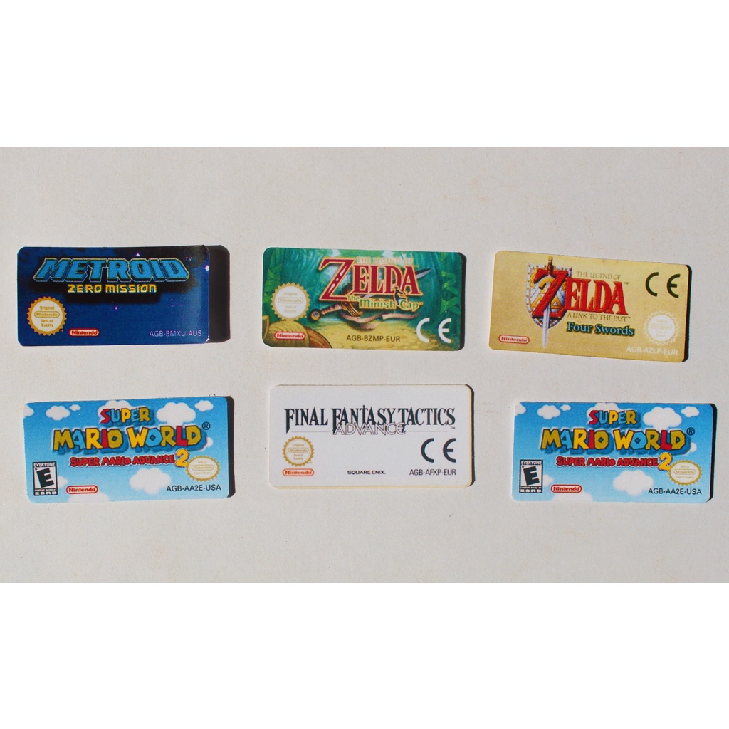 KIT 6 LABEL ETIQUETAS PARA CARTUCHO GAME BOY ADVANCE NINTENDO GBA