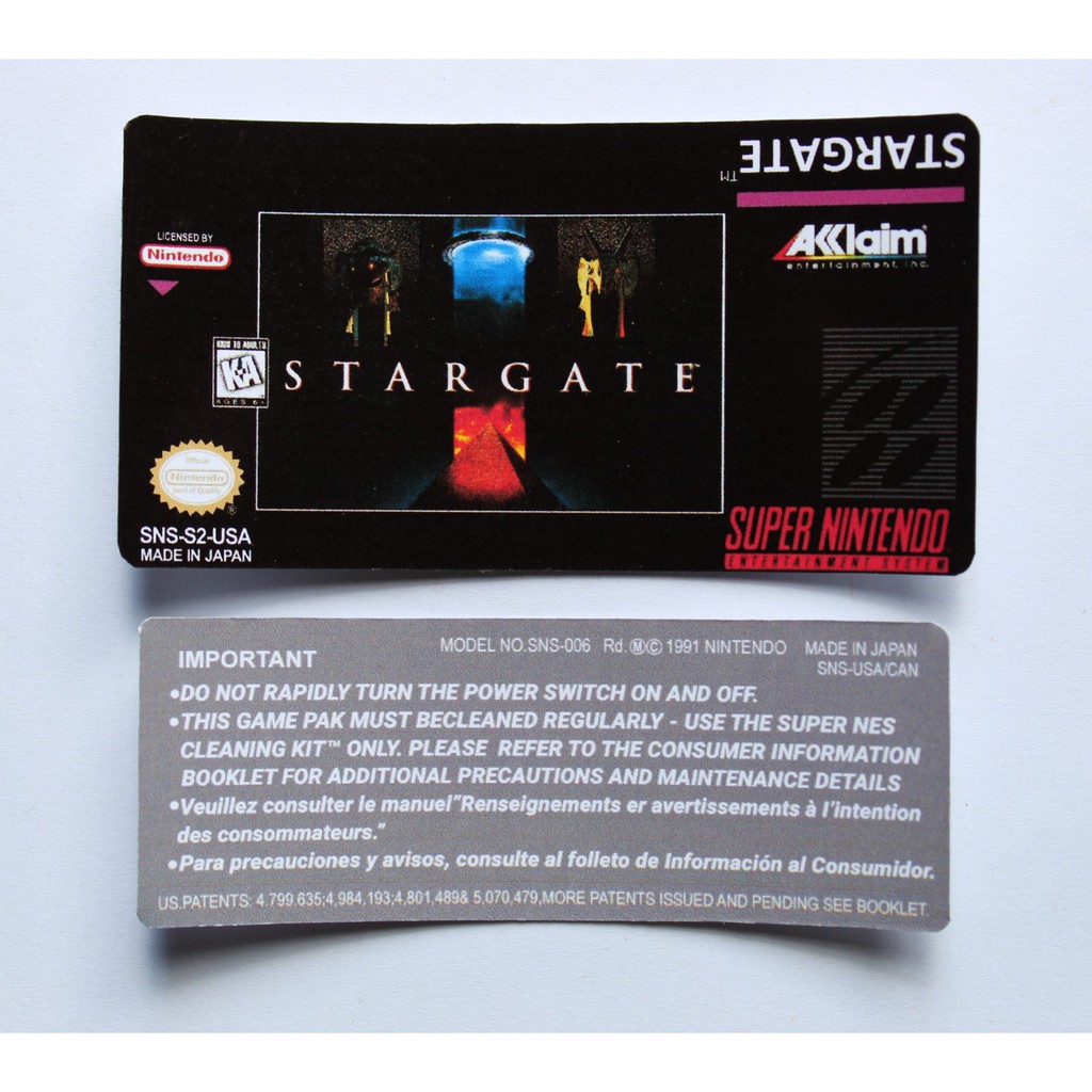 LABEL ETIQUETA STARGATE PARA CARTUCHO DE SUPER NINTENDO - FRENTE E VERSO