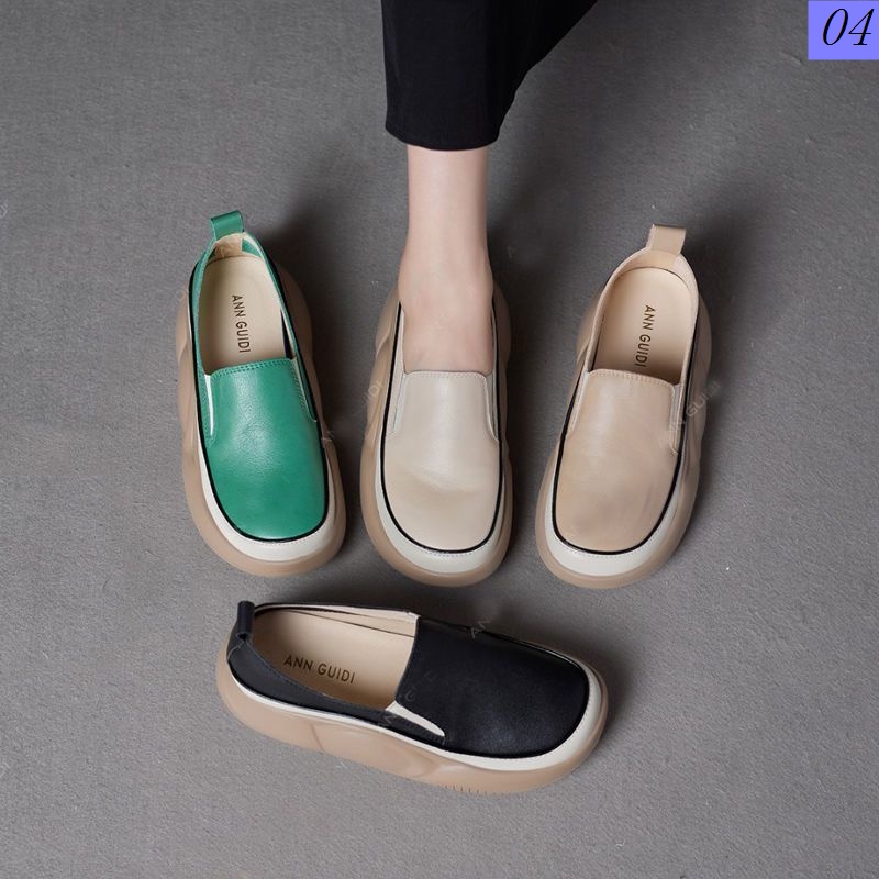 Genuine Leather Slip-On Thick-Soled Loafers Feminino 2023 Primavera Outono Verão Novo Estilo Plataforma De Tudo Em Combinação Mulheres Casuais Espessas