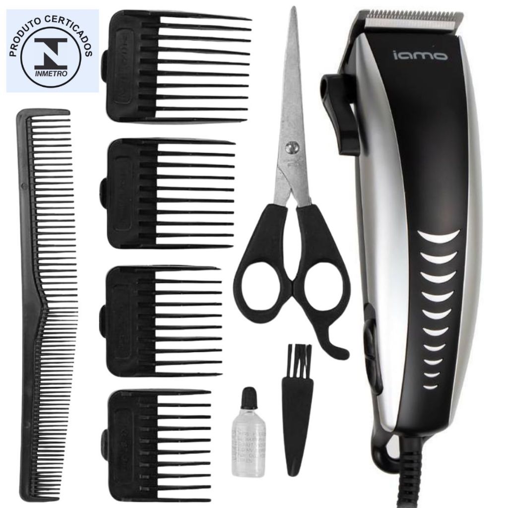 Maquina de Cortar Cabelo Pelo Barba + Acessórios Iamo Profissional Com Pente e Tesoura