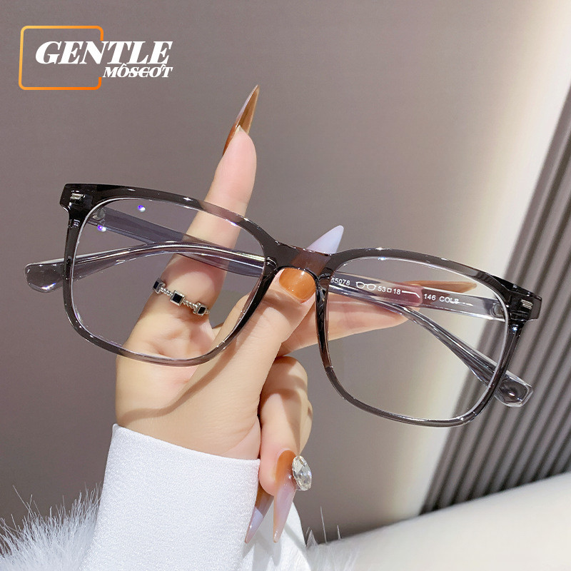 (GentleMoscot) TR90 Transparente Cinza Quadrado Arroz Prego Ultra Leve E Moderno Óculos Anti Luz Azul Para Homens Mulher