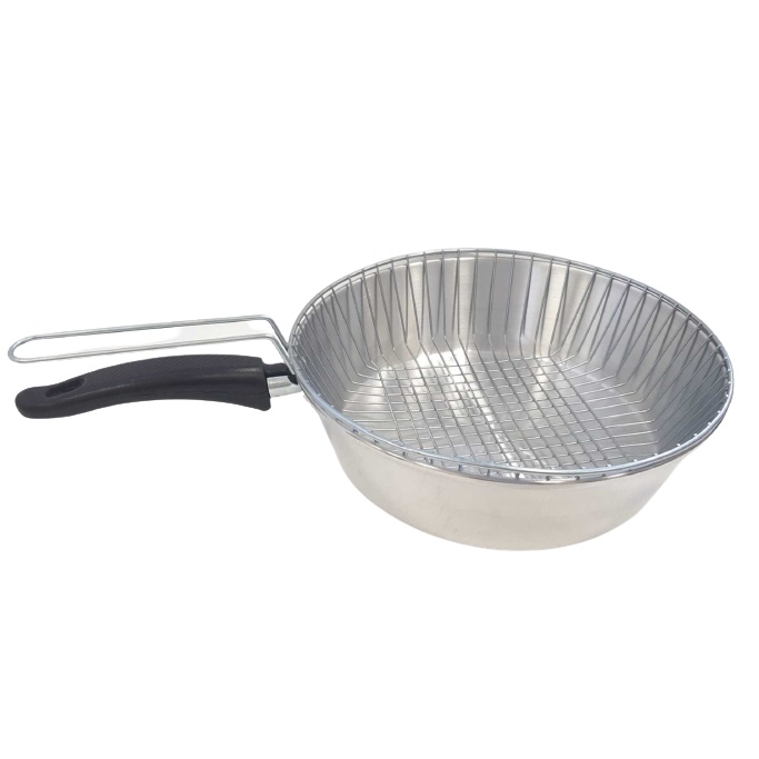 Frigideira fritadeira com cesto de fritura - panela fritadeira com cesto para fritar em alumínio polido alta qualidade e reforçada com selo do inmetro