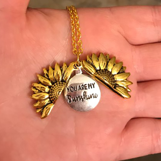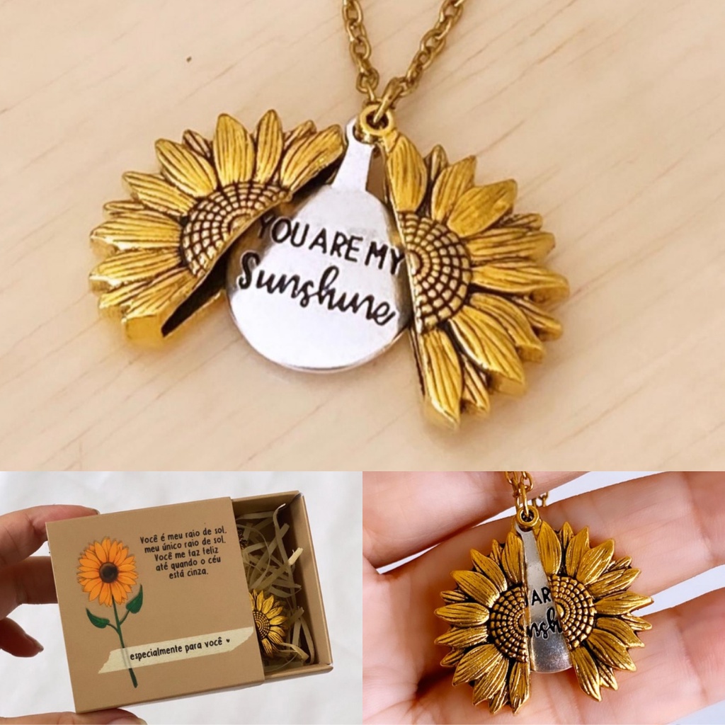 Colar Girassol com Mensagem You are my ray of sunshine Você é meu raio de Sol