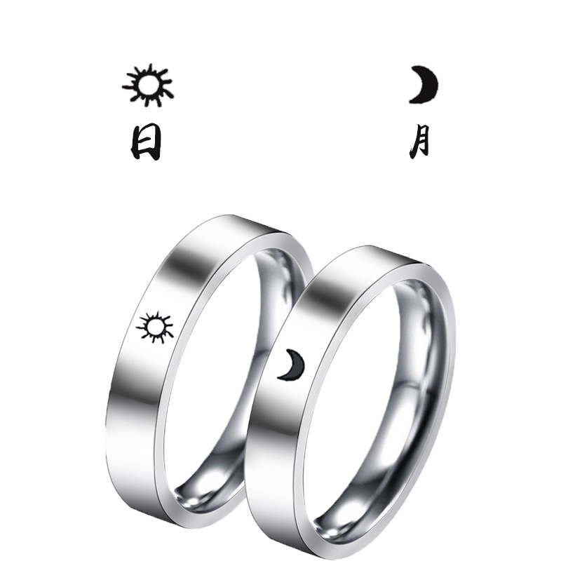 (4Mm De Largura) Simples Casal Anel De Aço Inoxidável Sol E Lua Amor Você Do Nascimento Para O Sol Para Amigos Da Menina Namorados Presentes Do Dia Dos Namorados