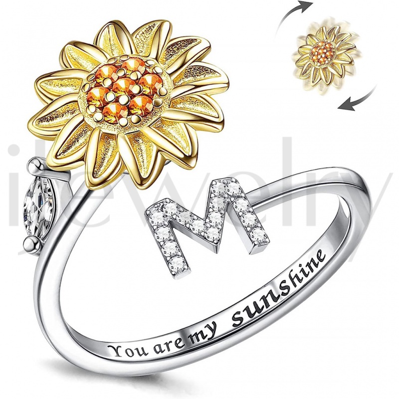 Anéis anti-stress feminino, iJewelry Ajustável Girassol Giratório Anel, Empilhável Ansiedade Carta Dedo Círculo para Aliviar o Estresse, Gravado 'Você é meu sol "Dentro da jóia