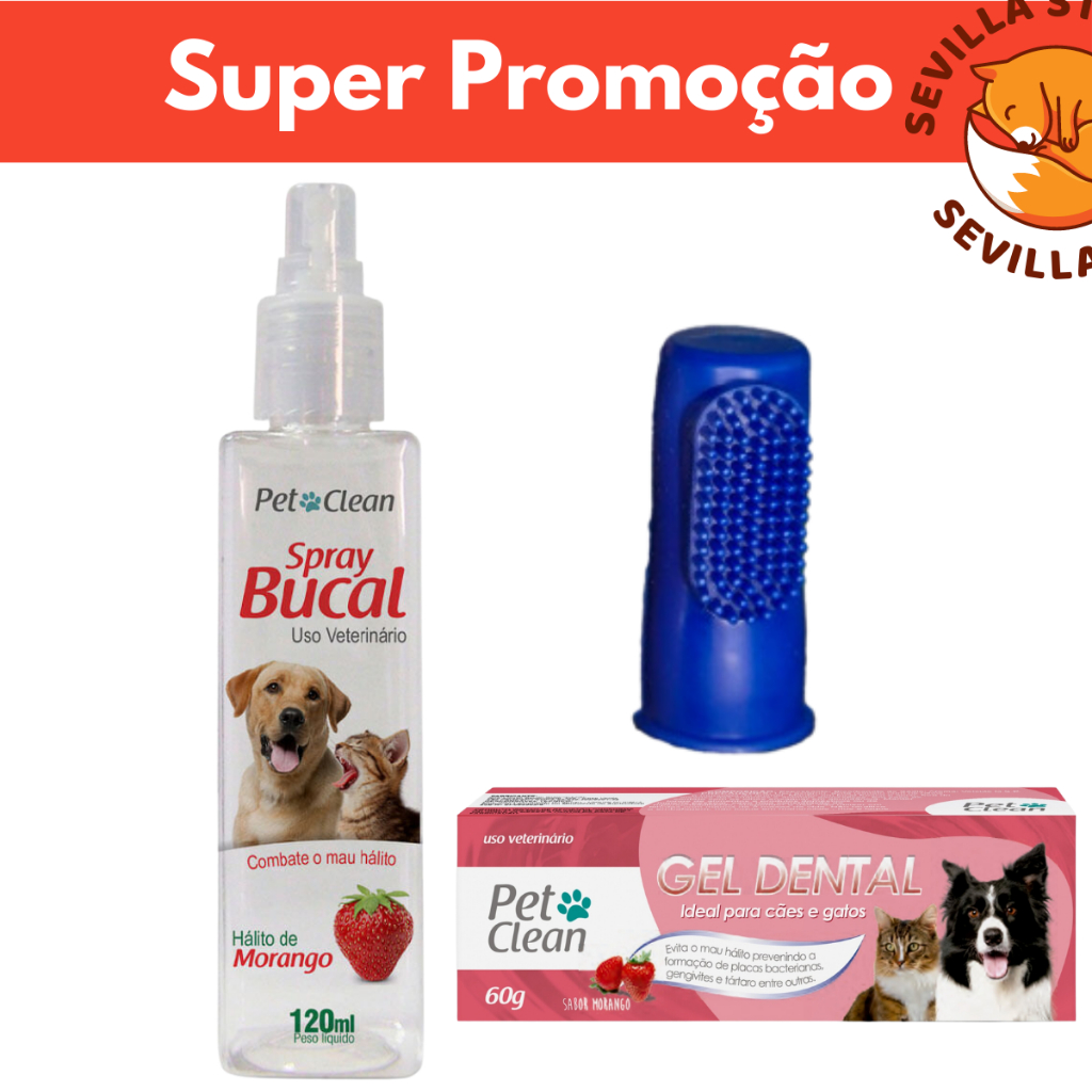Combo Kit Higiene Dental Pasta Dental + Spray Bucal para Cães e Gatos + Dedeira