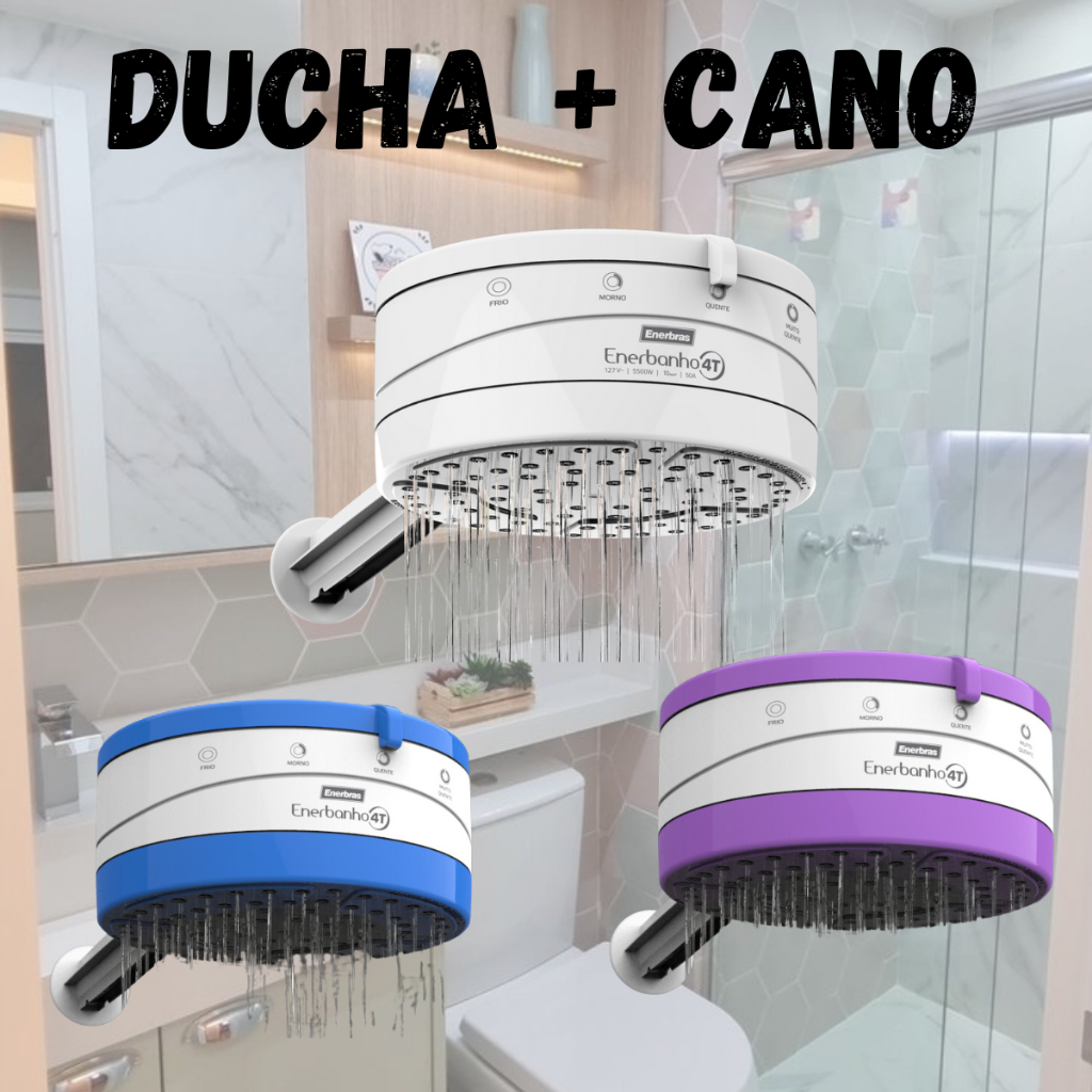 Kit Ducha Chuveiro Eletrico Enerbanho 4T + Cano Braço 30cm ou 40cm Branco Azul Roxo Para Chuveiro Econômico Combo Pack Barato Na Cor Branco Azul Roxo