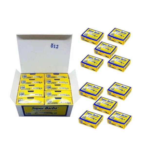 Lâmina De Barbear Super Barba Amarela 3 Caixa C/100 Metades