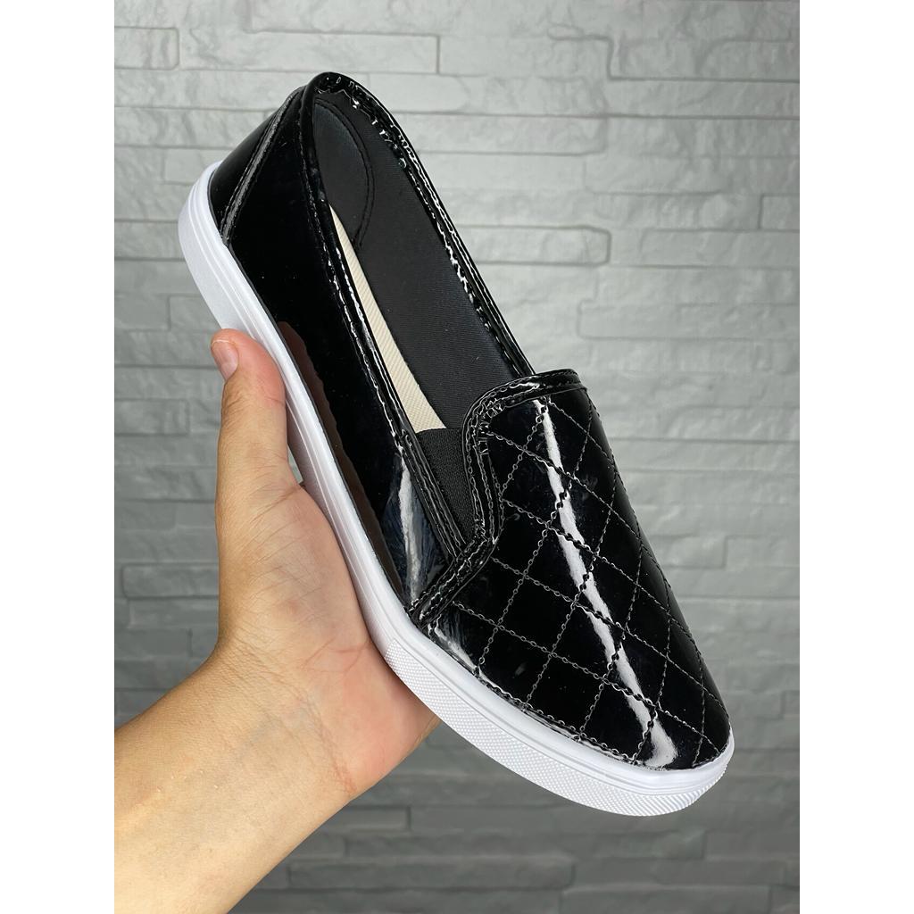 Tênis Slip On Sapatênis Sapatilha Feminino Casual Confortável Leve Verniz Elástico Envio Imediato