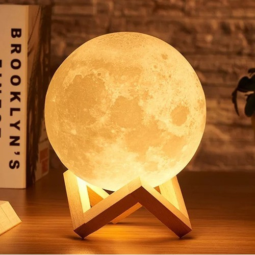 Luminária De Lua Cheia 3d Led Abajur Decoração