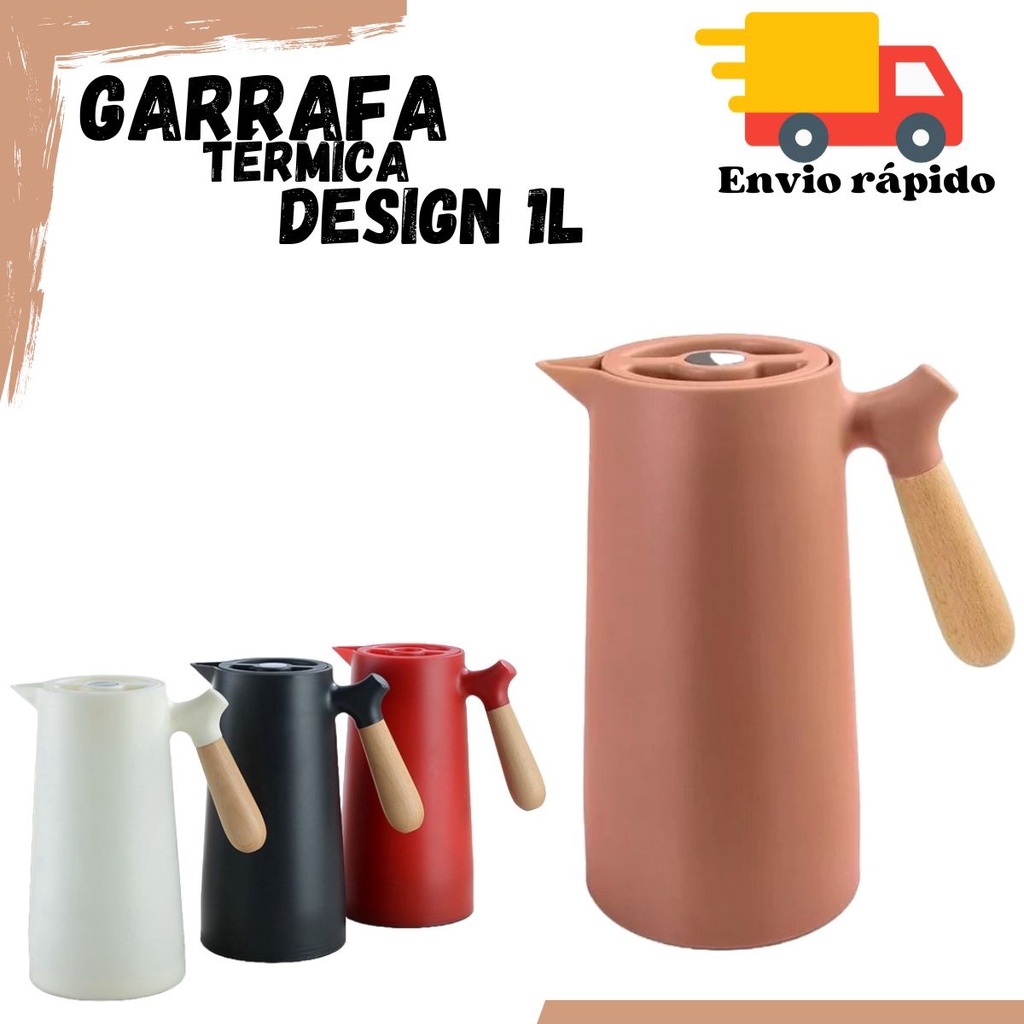 Garrafa Térmica Nórdica 1 Litro Café e Chá Bule Cabo Madeira Botão Gelado 9h quente 6h