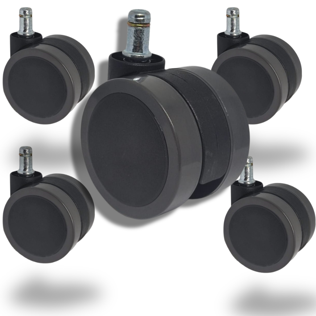 Kit 5 Rodinhas Rodízio Universal Para Cadeira De Escritório Giratória Pu Anti Risco 50mm Preto Ultra Resistente 120 kg