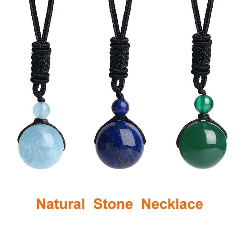 14mm Moda Natural Puro Ágata Calcedônia Ametista Aventurina E Lapis Lazuli Contas De Pedra Pingente Lucky Brinco Beads Pingente Ajustável Colar De Cura