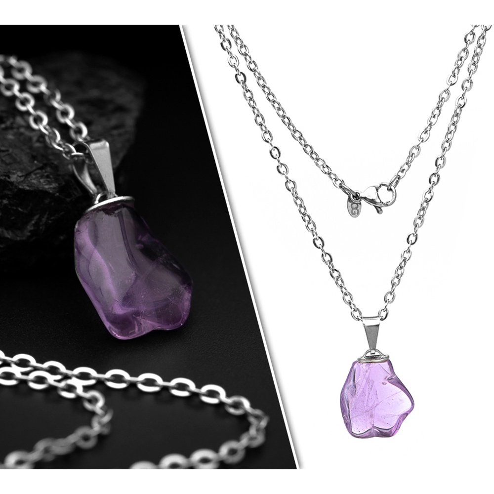 Corrente Cordao Aco Inox J-1064 Colar Pedra Natural Ametista + Estojo OGrife