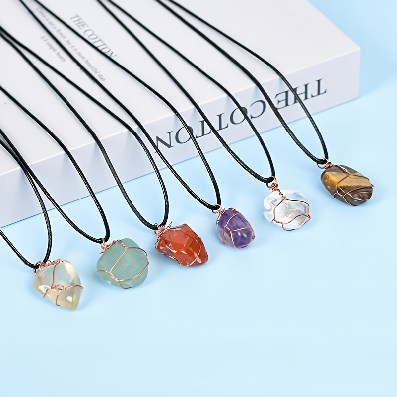 Colar Pingente De Cristal Natural Feminino/Colares De Contas De Charme Simples/Obsidiano Ametista De Pedra De Tigre Chakra/Acessórios De Jóias Para Namoradas