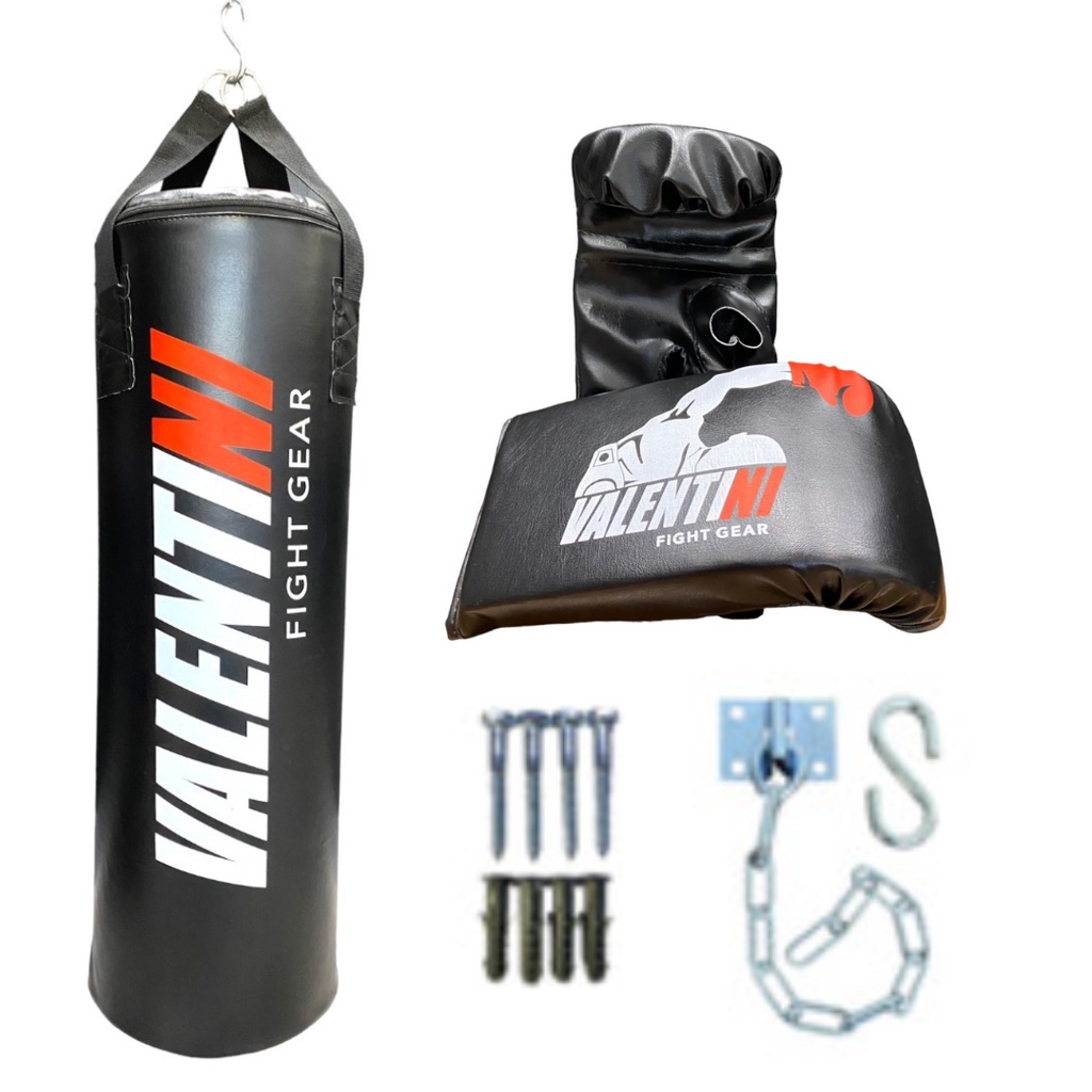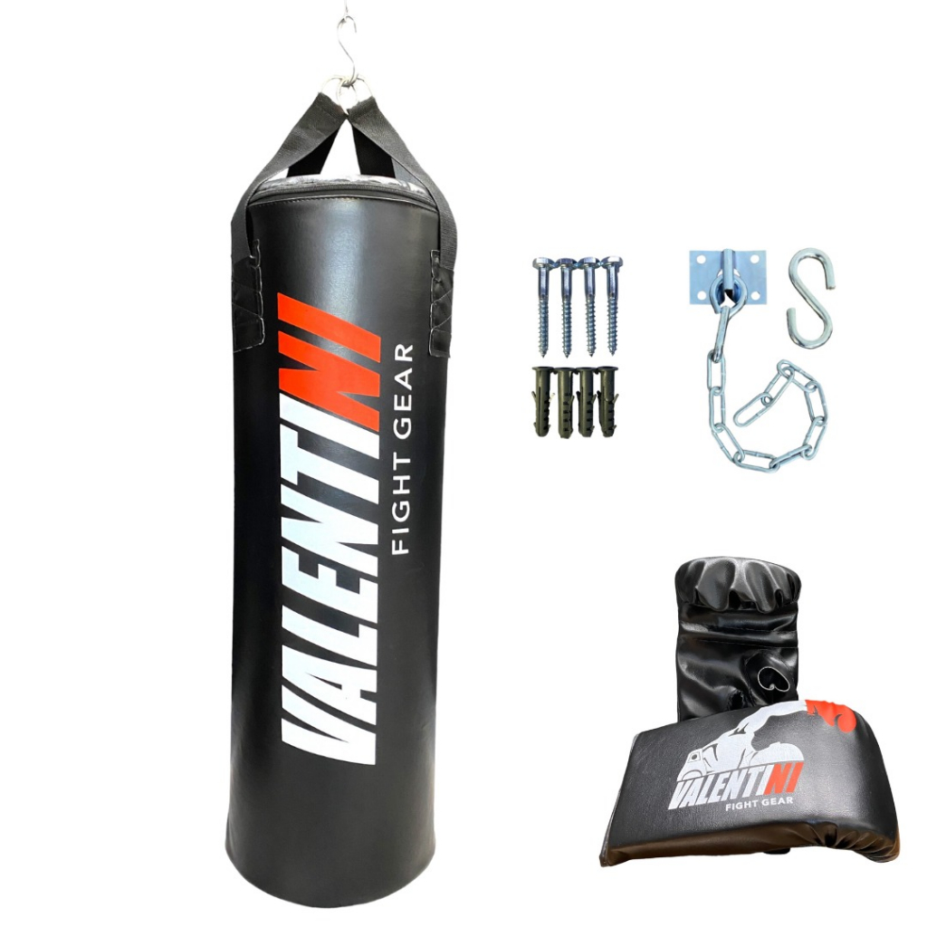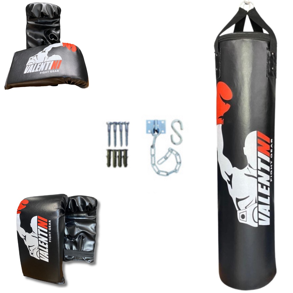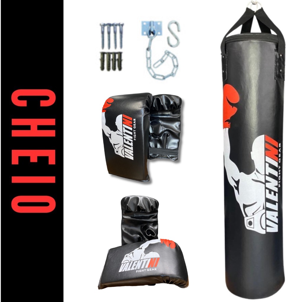 Saco de Pancada VALENTINI 160 cm - Treino Boxe Muay Thai - Alta Resistencia + Luva Bate Saco Preta