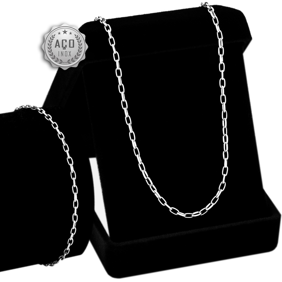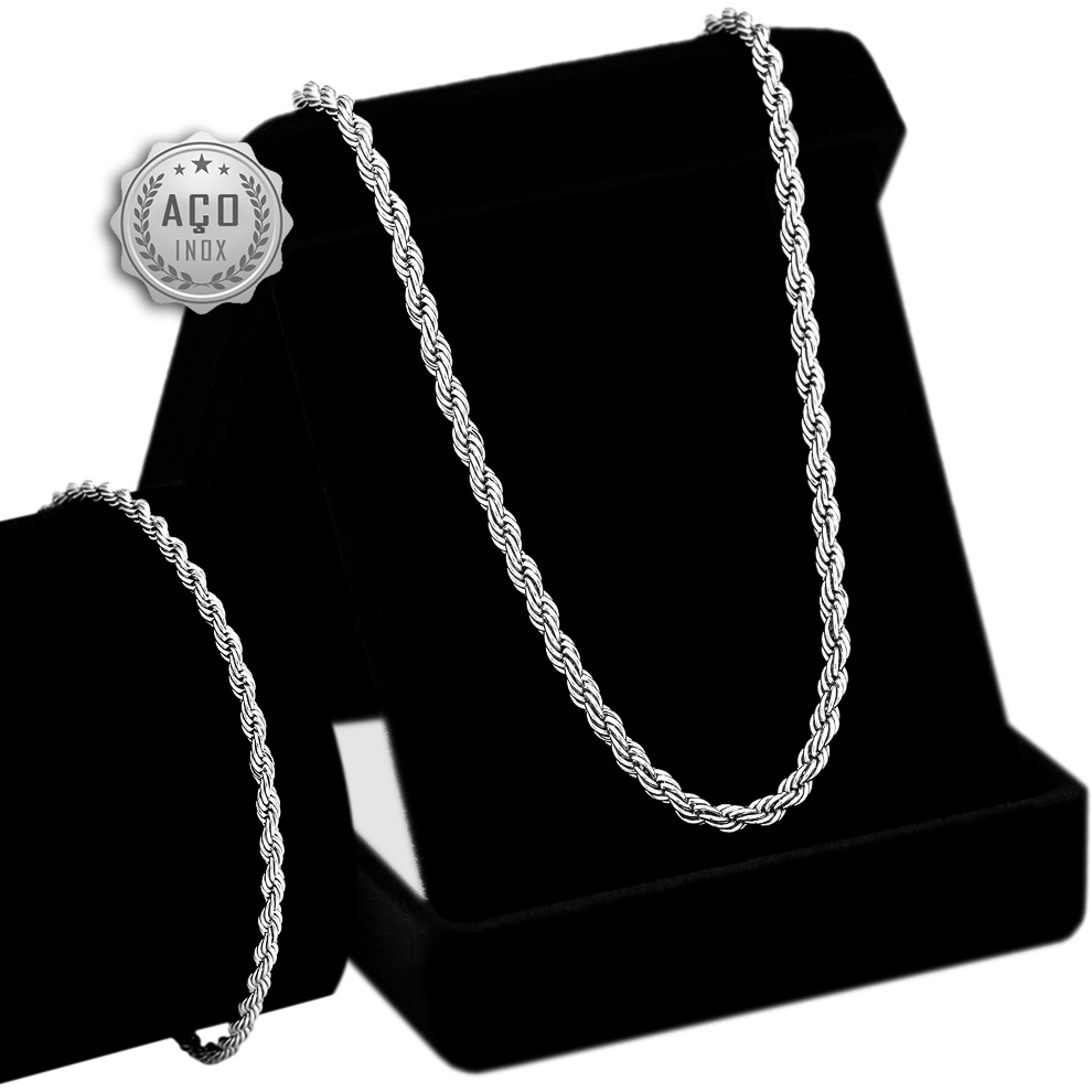 Conjunto Masculino Cordao Baiano E Pulseira Cj-13 Aco Inox + Estojo OGrife