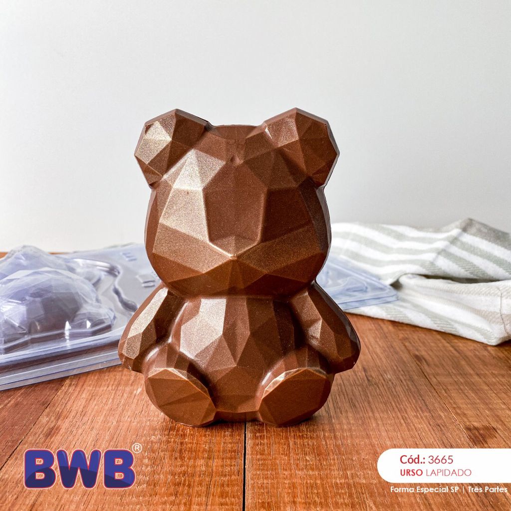 Forma BWB Urso Lapidado Semiprofissional, Com Silicone (3 partes) Para Bombons de Chocolate E Confeitaria - Cód. 3665